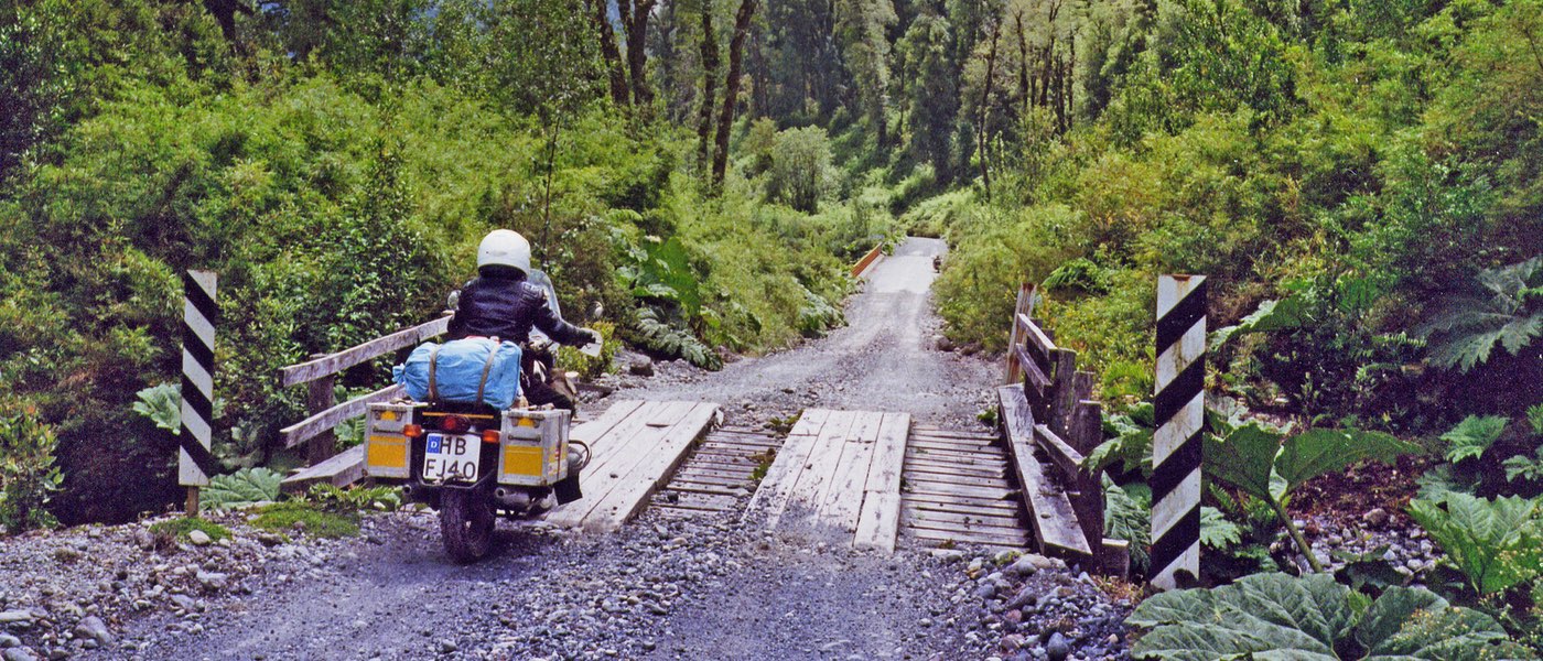 But the dirt road in front of us disappeared into the dangerously dark shadows under the trees. There was just enough light left in the sky to be able to see that within a few metres, the gravel changed into patches of soft sand and rutted potholes. The cicadas were in full song in a warm slightly dank air that was scented with just a hint of tangy sea breeze. Beneath me, my bike engine ticked over calmly as it waited patiently to be told what to do next.